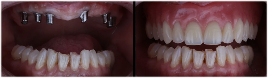 Many of our patients have dentition with advanced disease where the long-term prognosis of limited remaining teeth is poor. Additionally, many of these patients do not want dentures. In these cases, complete rehabilitation with implants is warranted